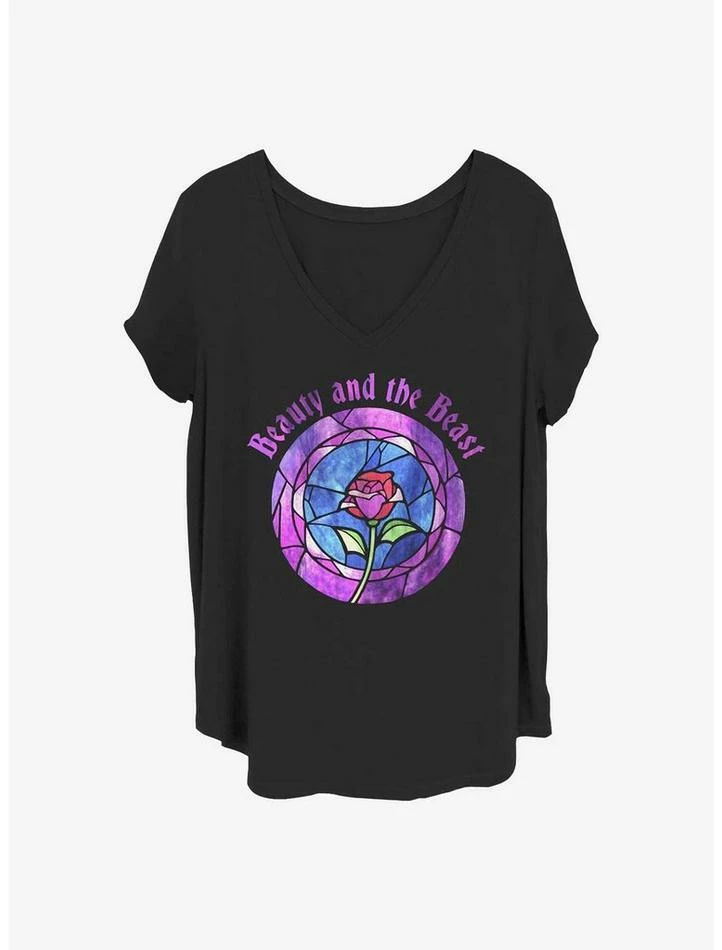 New ๐งจ Disney Beauty and the Beast Glass Rose Girls T-Shirt Plus Size ๐งจ