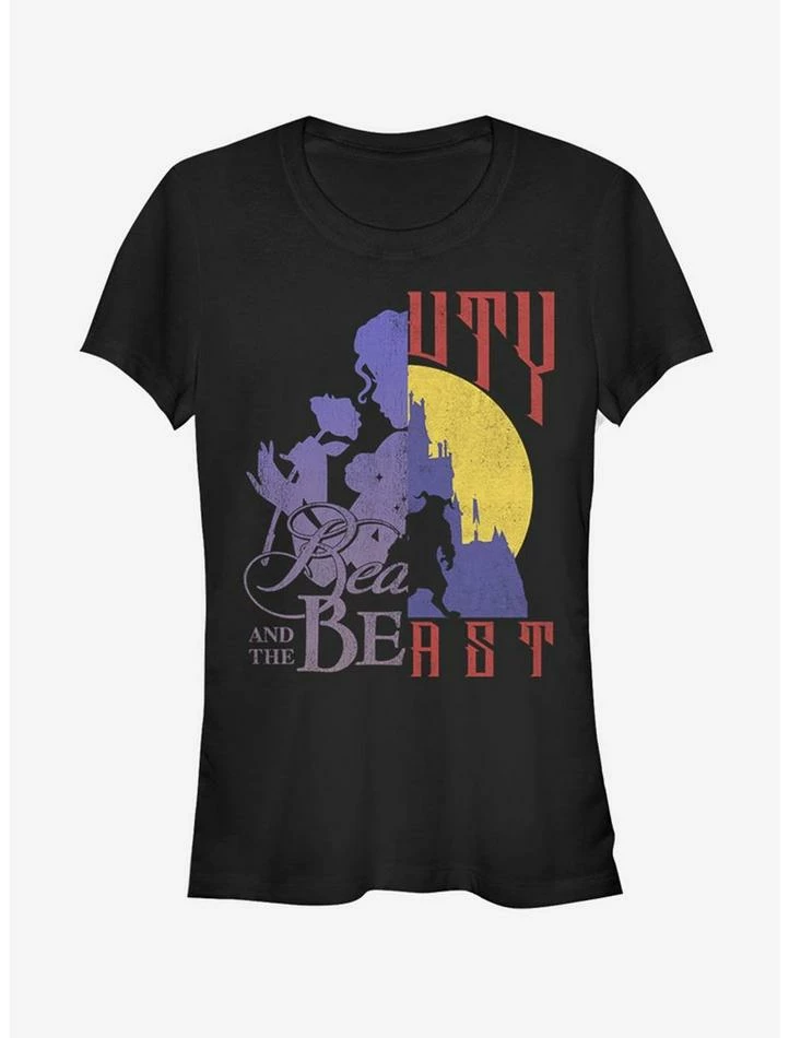 One beauty, one beast. One tee, two graphics. Celebrate the iconic movie with this fitted black tee that features a split image inspired by Disney’s Beauty and the Beast.