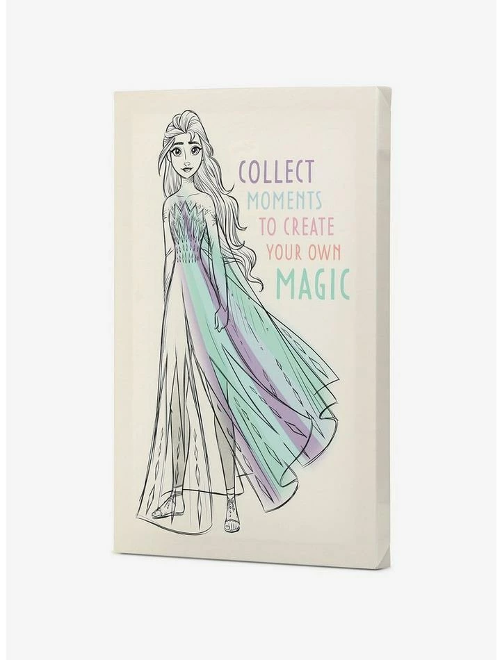 Let Elsa inspire your little one to be brave and unique with this wall decor! This striking piece features a turquoise and purple sketch of Elsa alongside colorful and motivational text.