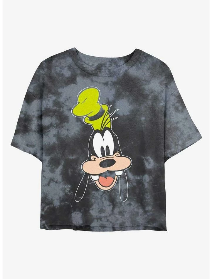 Hot Sale 👍 Disney Goofy Goofy Big Face Tie-Dye Girls Crop T-Shirt ⌛