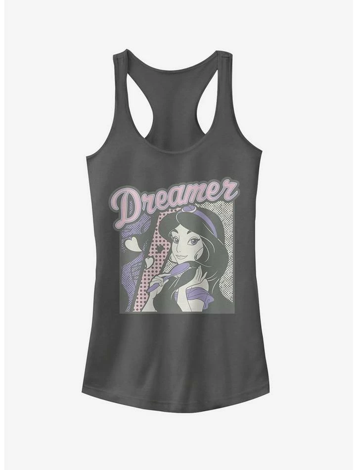 Let’s hope one of your three wishes is finding the Disney Aladdin Jasmine Dreamer Juniors’ Tank Top! Jasmine is displayed in a fun pastel comic book style below “Dreamer” on this slim fit Jasmine tank top.