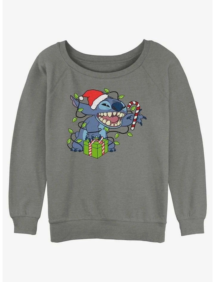 Outlet ❤️ Disney Lilo & Stitch Christmas Lights Girls Slouchy Sweatshirt 👍
