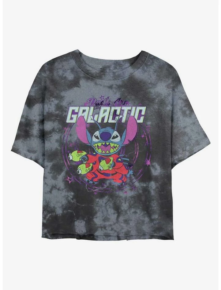Cheap ๐ฏ Disney Lilo & Stitch Galactic Dad Tie-Dye Girls Crop T-Shirt ๐