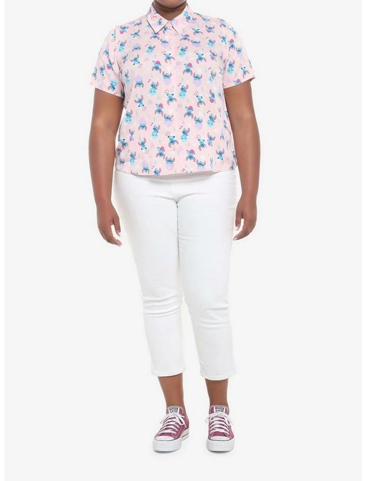 New βοΈ Disney Lilo & Stitch Hearts Pink π Girls Woven Button-Up Plus Size βοΈ