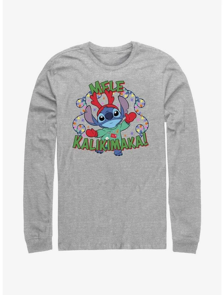 Cheapest 🥰 Disney Lilo & Stitch Mele Kalikimaka Merry Christmas in Hawaiian Long-Sleeve T-Shirt 🌟