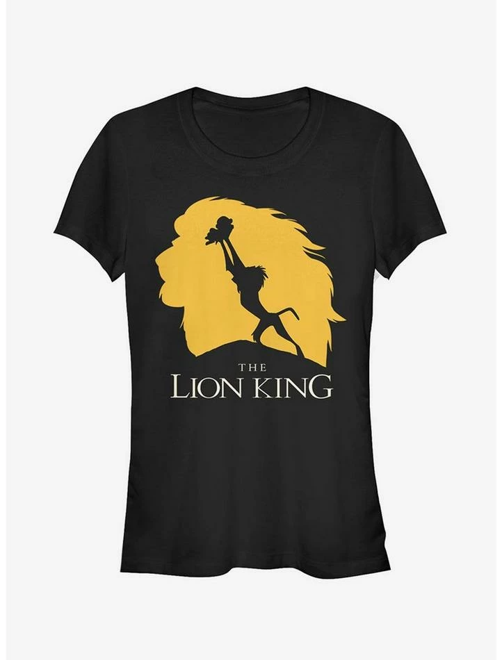 If you sing the “Circle of Life” song every day, then you’ll love the Disney Lion King Pride Rock Silhouette Juniors’ T-Shirt. Memorialize the beloved scene where Rafiki introduces baby Simba to the kingdom, while a yellow graphic of Mufasa is printed in the background on this fun Lion King tee.