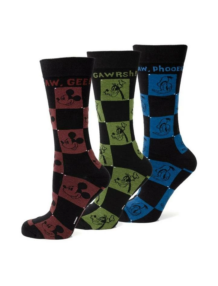 You’ll be saying “Aw, Gee,” “Aw, Phooey,” and “Gawrsh” with this Disney Sock Gift Set! This set of three checkered socks has Mickey Mouse in a deep red, Donald Duck in blue, and Goofy in green. Add some pep in your step and whistle while you work with these 100% Cotton socks. Officially licensed by Disney.