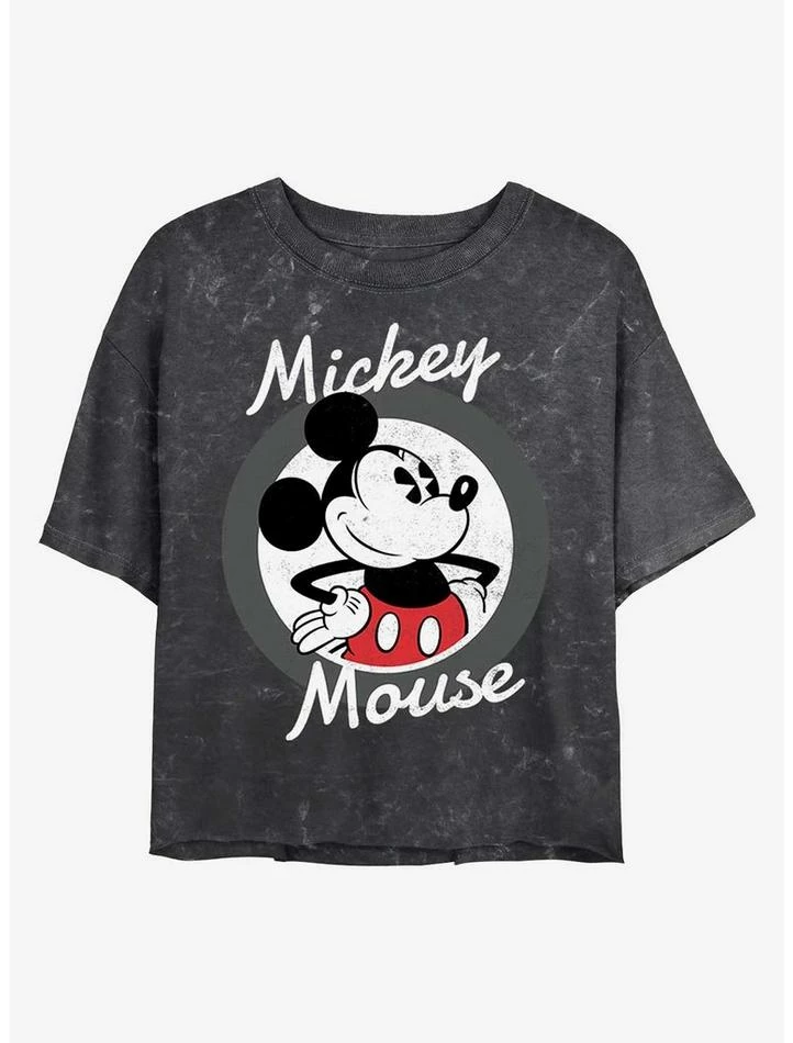 New 🔔 Disney Mickey Mouse Classic Mickey Mineral Wash Crop 😉 Girls T-Shirt ❤️