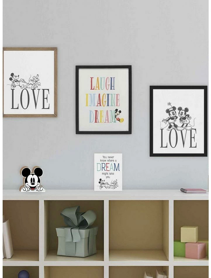 Wholesale π Disney Mickey Mouse Colorful Laugh Imagine Dream Framed Wood Wall Decor π₯