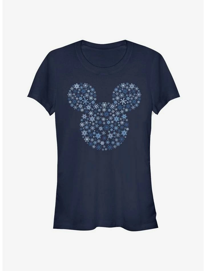 Flash Sale 😀 Disney Mickey Mouse Holiday Head Snowflake Outline Classic Girls T-Shirt 👏