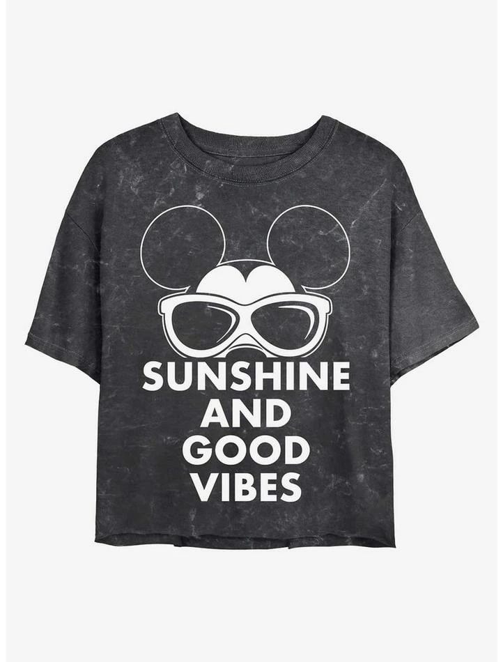 Discount ⭐ Disney Mickey Mouse Sunshine and Good Vibes Mineral Wash Crop Girls T-Shirt 👍