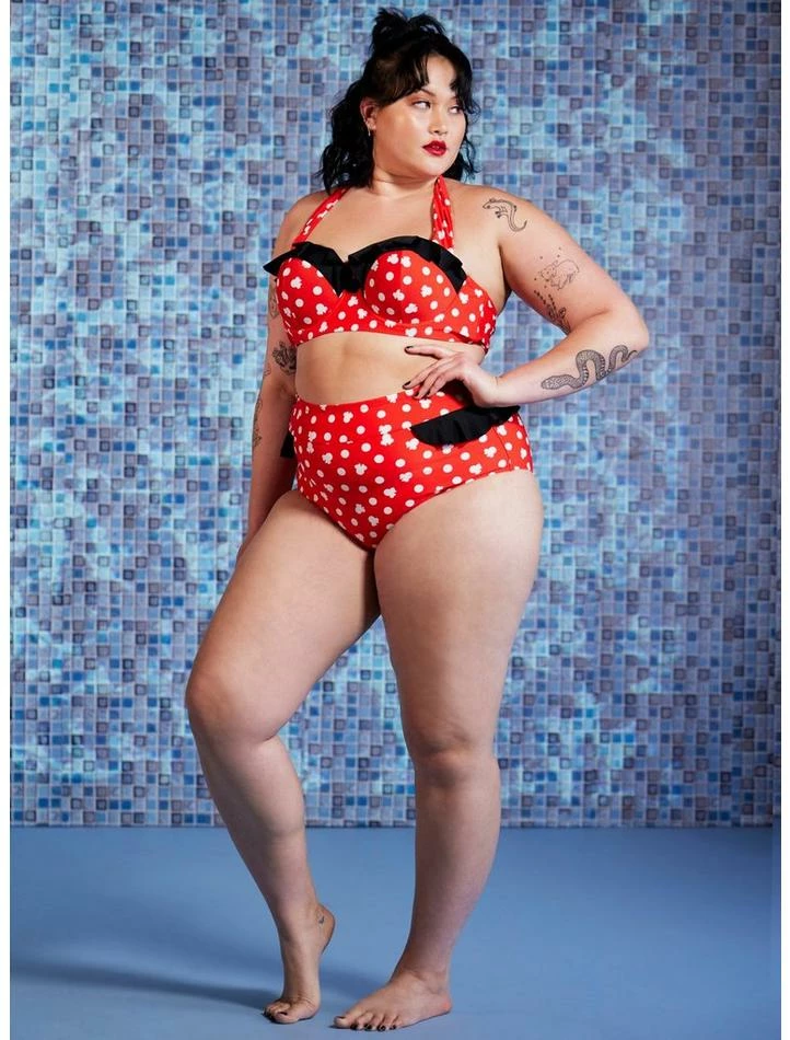 Promo β€οΈ Disney Minnie Mouse Ruffled High-Waisted Swim Bottoms Plus Size π