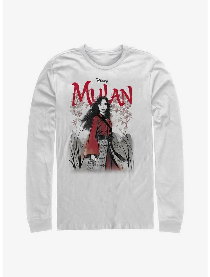 Discount ⌛ Disney Mulan Watercolor Live Action Title Long-Sleeve T-Shirt ❤️