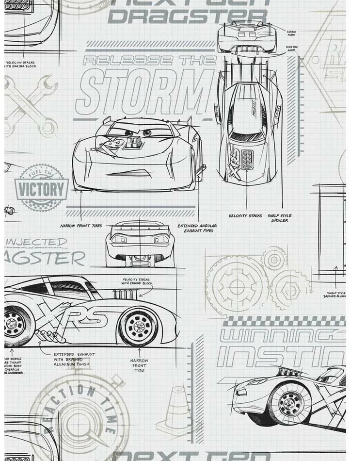 Turn your little racer’s bedroom into a scene from the movie with the Grey and White Disney and Pixar Cars Schematic Peel and Stick Wallpaper by. Using our superior peel and stick removable technology, install this wallpaper on any smooth, flat surface. To hang, remove the backing and smooth onto walls. Use a smoothing tool to smooth out any bubbles or wrinkles. To remove, simply peel away and watch your wallpaper effortlessly come off of the wall while keeping your walls 100% safe and clean. This will surely be the easiest wallpaper you?ll ever hang.
