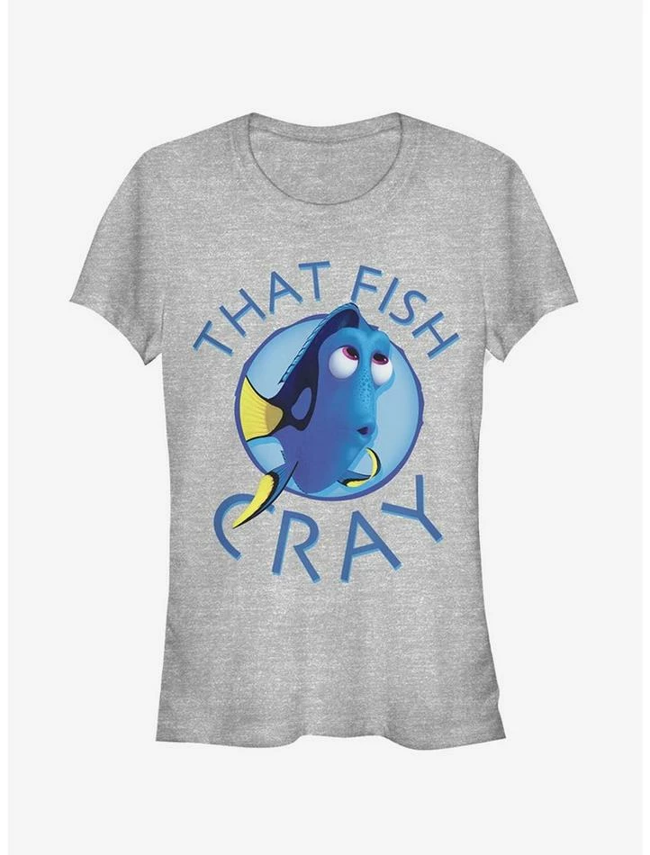 Dory is a little odd but she’s proud of it with the Pixar Finding Dory That Fish Cray Juniors’ T-Shirt! This funny fitted Dory tee reads “That Fish Cray” in blue text down the front.