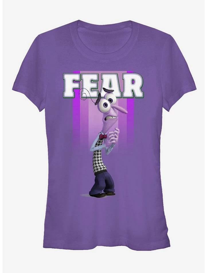 Don’t fret! Just wear the Pixar Inside Out Fear Portrait Purple T-Shirt and you’ll feel just a tiny bit braver! Riley’s emotion, Fear, cowers beneath his name on this cute fitted purple Inside Out shirt. 100% Cotton.