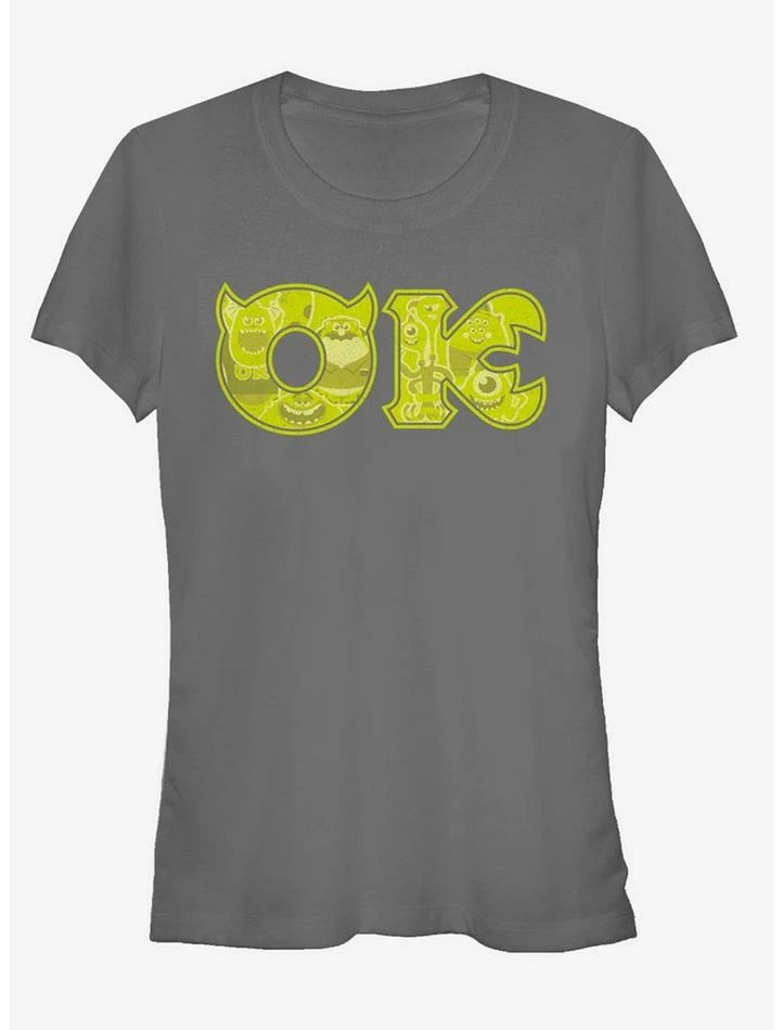 Get your Monsters Inc. Oozma Kappa Fraternity Charcoal Gray T-Shirt and then get ready to compete in the Scare Games! Be a part of the Oozma Kappa fraternity with this fun gray Monsters Inc. T-shirt that reads “OK” with several monsters shaping the letters. 100% Cotton.