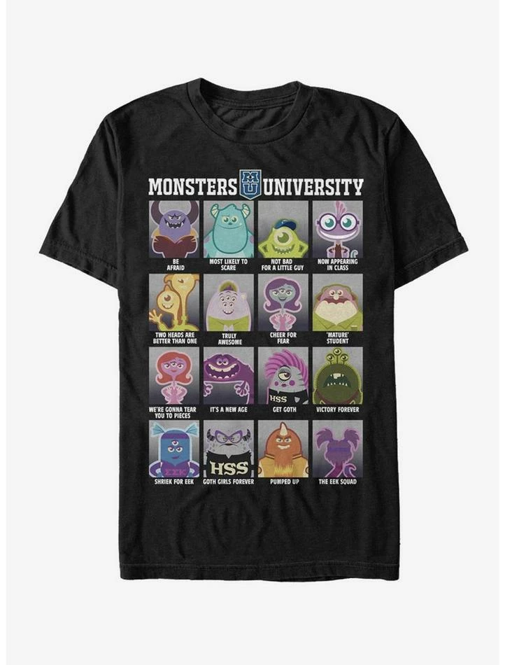 All the votes are in and the Disney Pixar’s Monsters University yearbook is all ready. Check out all the titles won by your favorite characters like Sulley, Mike, Squishy, Don Carlton, Terri & Terry Perry and Art on this black shirt.