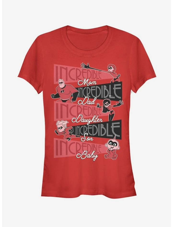 What happens when you combine an incredible mom with an incredible dad, incredible daughter, incredible son, and incredible baby? Well, you get an incredible family. But you also get an incredible fitted red tee inspired by Disney Pixar’s The Incredibles!
