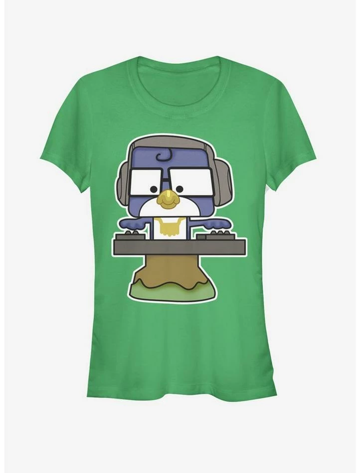 Straight from the Poultry Palace, it’s DJ Blu-Jay! This fitted Kelly green tee features an image of your favorite tune-playing fast food toy screened on the front.