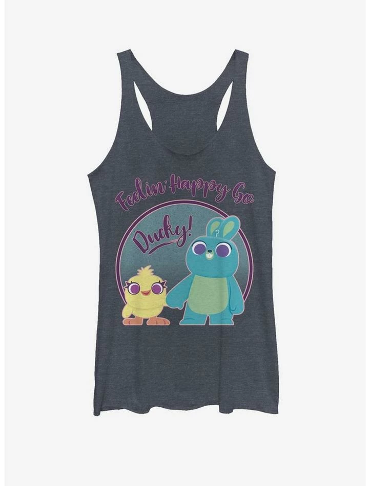 Discount β€οΈ Disney Pixar Toy Story 4 Ducky Bunny Pastel π€© Girls Navy Blue Heathered Tank Top π