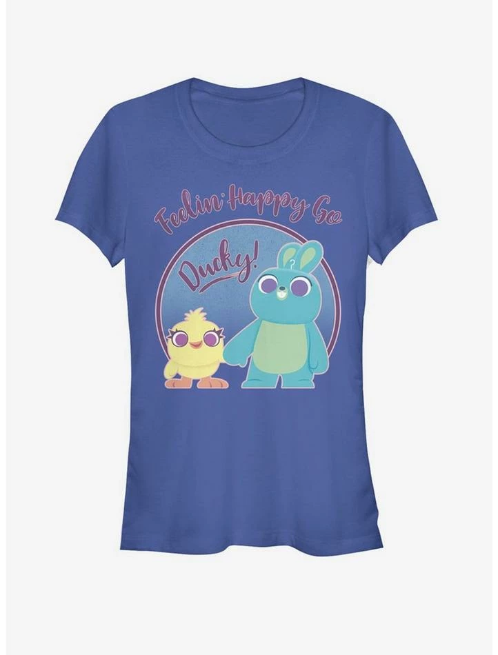 Feelin’ happy go lucky? Sorta, but more like feelin’ happy go DUCKY! This fitted royal blue tee features Ducky and Bunny from Toy Story 4 lookin’ perfect in pastel.