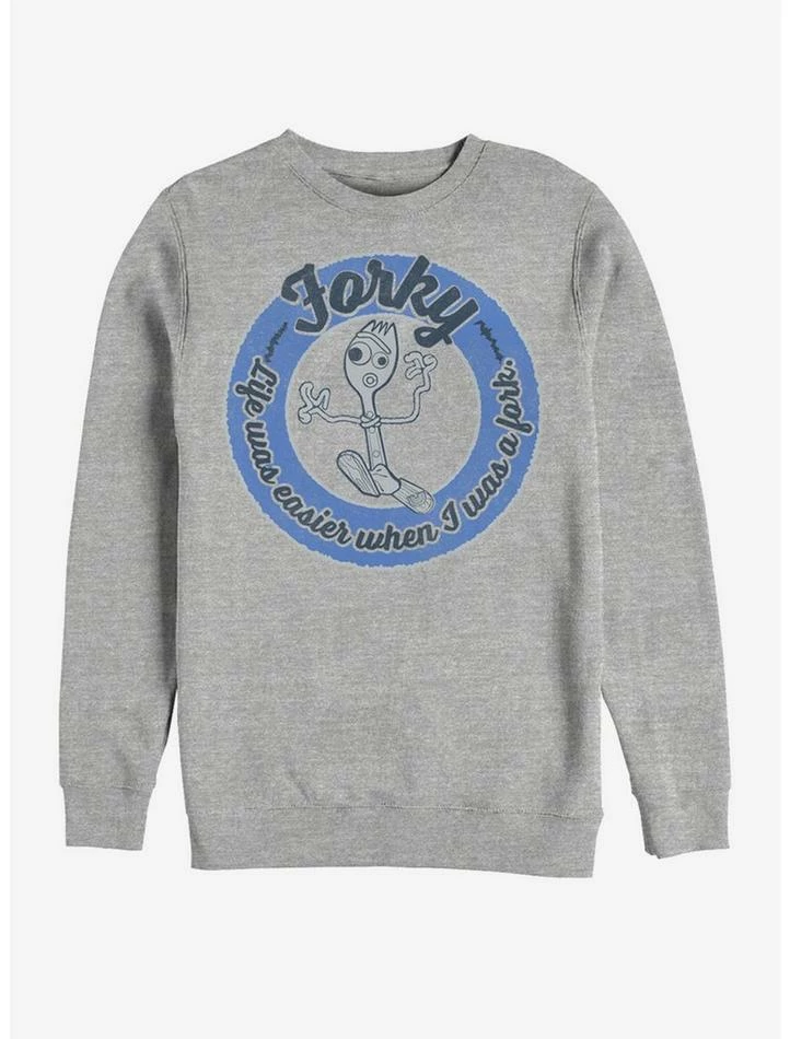 What’s the fun in being a toy? According to Forky, life was easier when he was just a fork. Spread the word with this heathered sweatshirt inspired by Toy Story 4.