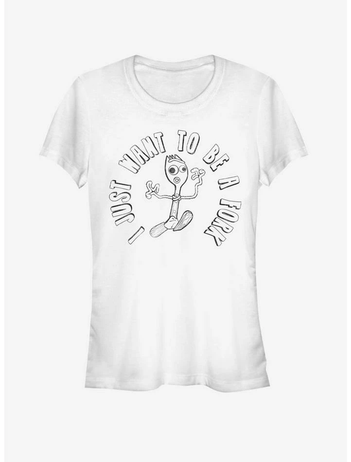Remember: Forky doesn’t want to be a toy. He just wants to be a fork! Remind others with this fitted white Toy Story 4 tee.