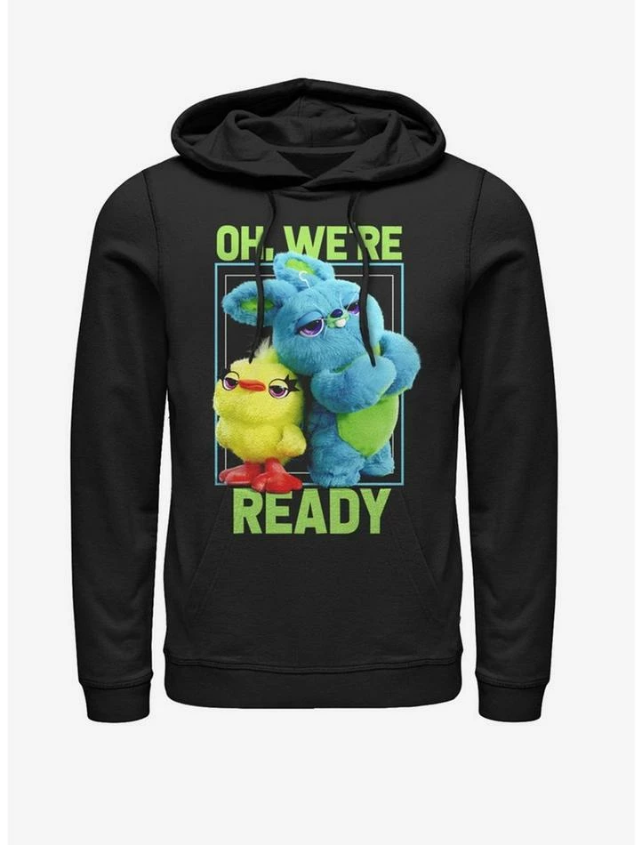 Hey Ducky, hey Bunny – you ready? Oh, we’re ready. This awesome black pullover hoodie features the well-prepared twosome from Toy Story 4 screened on the front.
