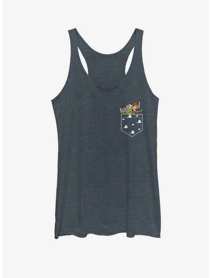 Budget ๐ Disney Pixar Toy Story Buzz and Woody Flying Faux Pocket โญ Girls Tank โค๏ธ