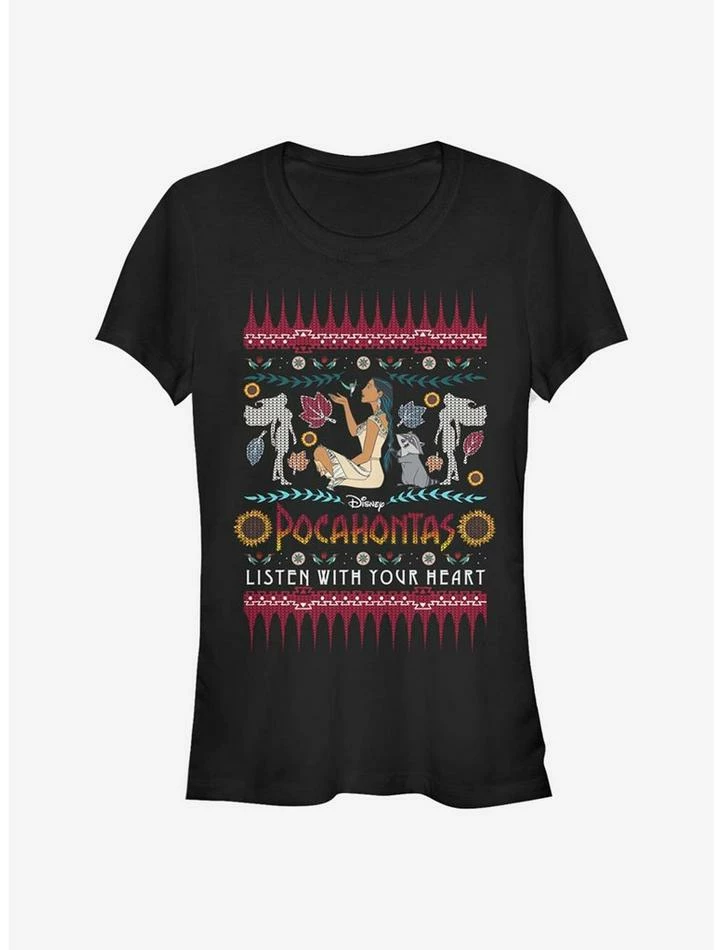 Discount ✨ Disney Pocahontas Ugly Holiday Sweater 💯 Girls T-Shirt ❤️