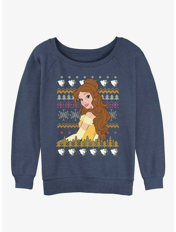 Top 10 ๐ Disney Princesses Belle Teacups Ugly Christmas ๐ Girls Slouchy Sweatshirt โ