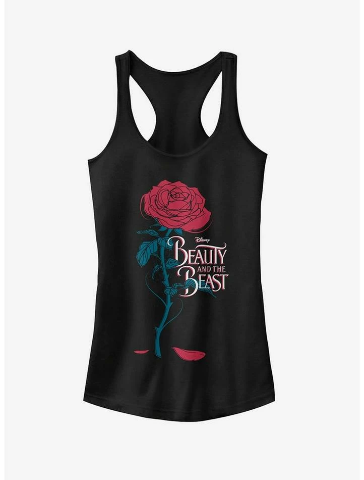 You better get your Disney Beauty and the Beast Rose Petal Logo Juniors’ Racerback Tank Top before the last petal falls and it’s too late! A red rose, with two fallen petals, is portrayed next to the Beauty and the Beast logo on this cute tank top.
