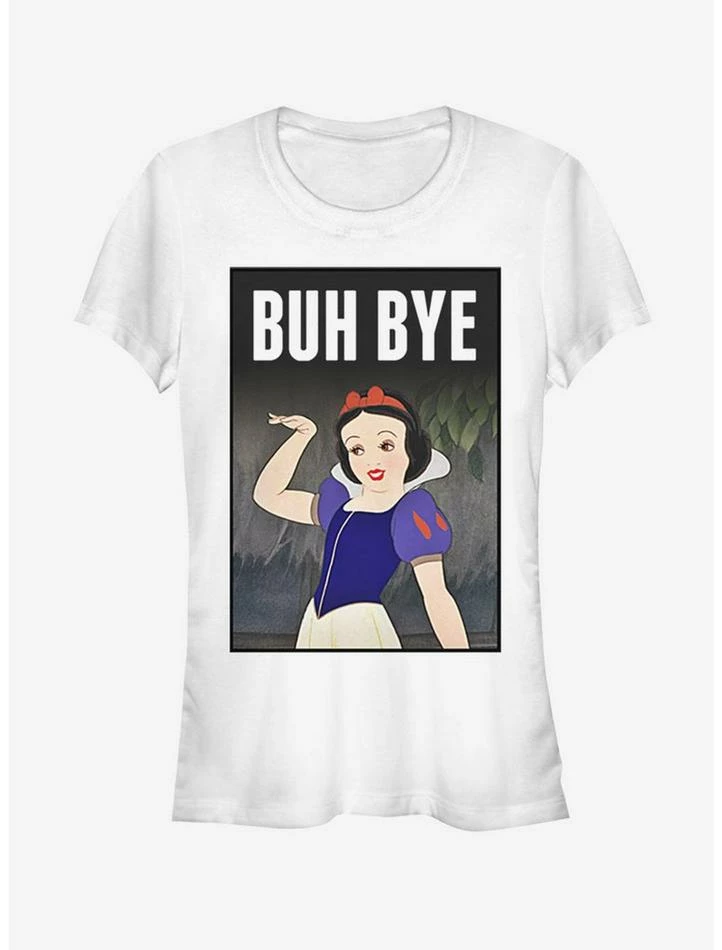 Everybody thinks Snow White is just the sweetest thing around, but this fitted white tee proves she’s got a sassy side. “Buh Bye.” (That one’s for all those Evil Queens out there.)