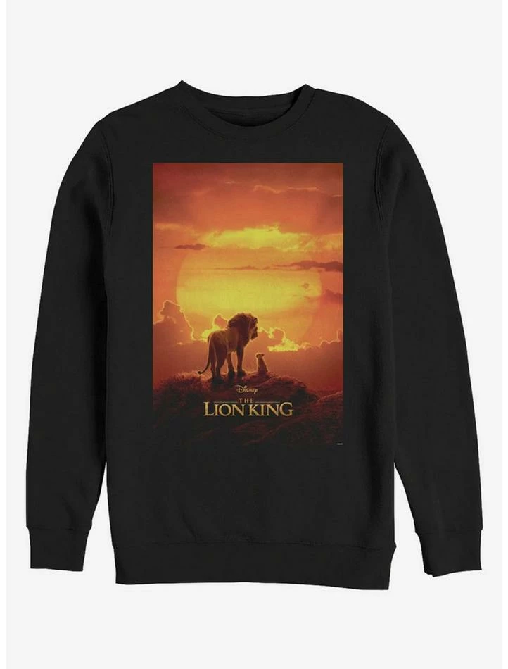 This black sweatshirt features Mufasa and Simba atop Pride Rock, from Disney’s photorealistic computer animated version of The Lion King.