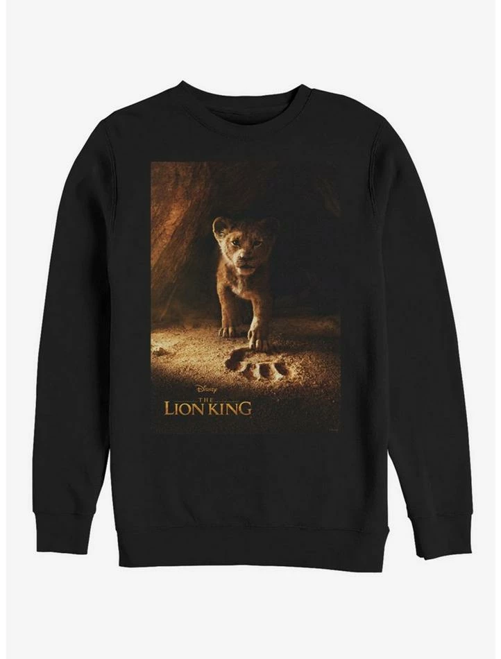 Those are some big shoes… errr… paws to fill. This black sweatshirt features poster art of Simba from Disney’s photorealistic computer animated version of The Lion King.