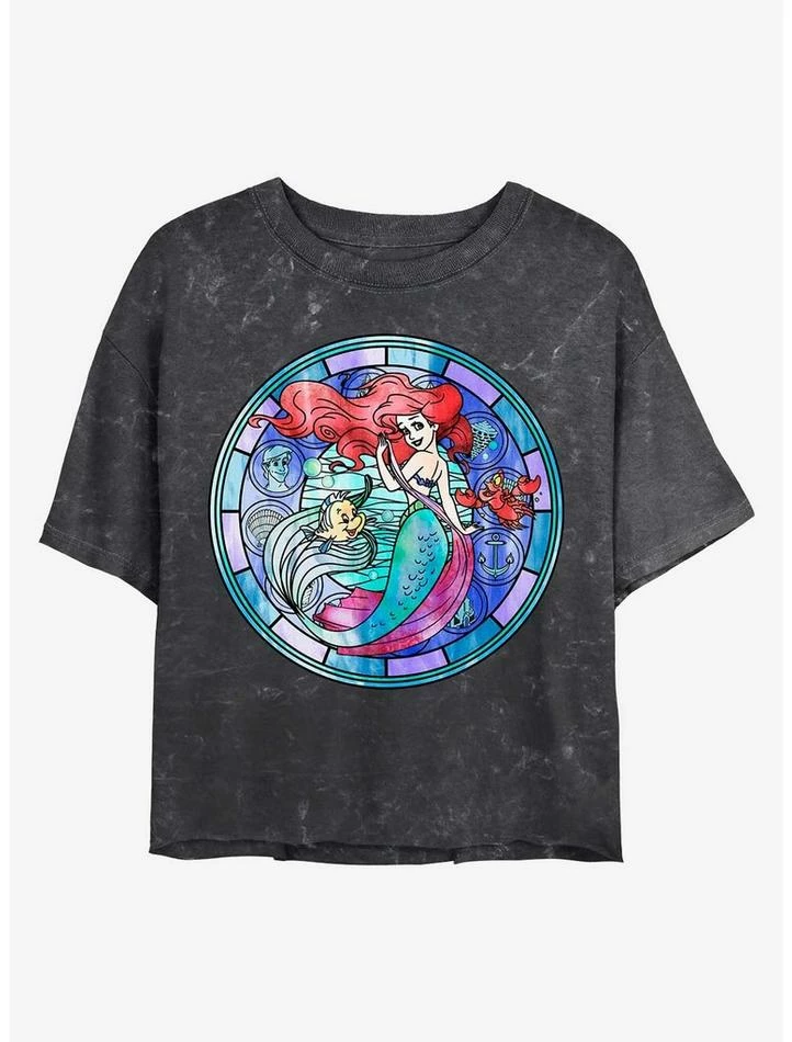 Promo ❤️ Disney The Little Mermaid Ariel Stained Glass Mineral Wash Crop 👏 Girls T-Shirt ✨