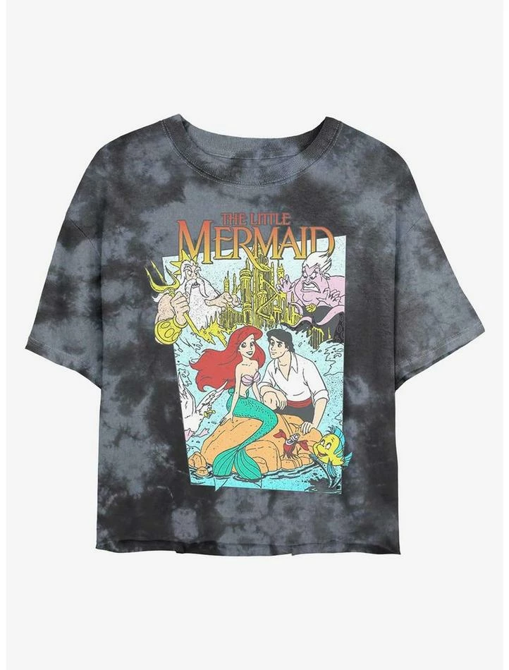Best Pirce π Disney The Little Mermaid Movie Cover Tie-Dye π Girls Crop T-Shirt βοΈ
