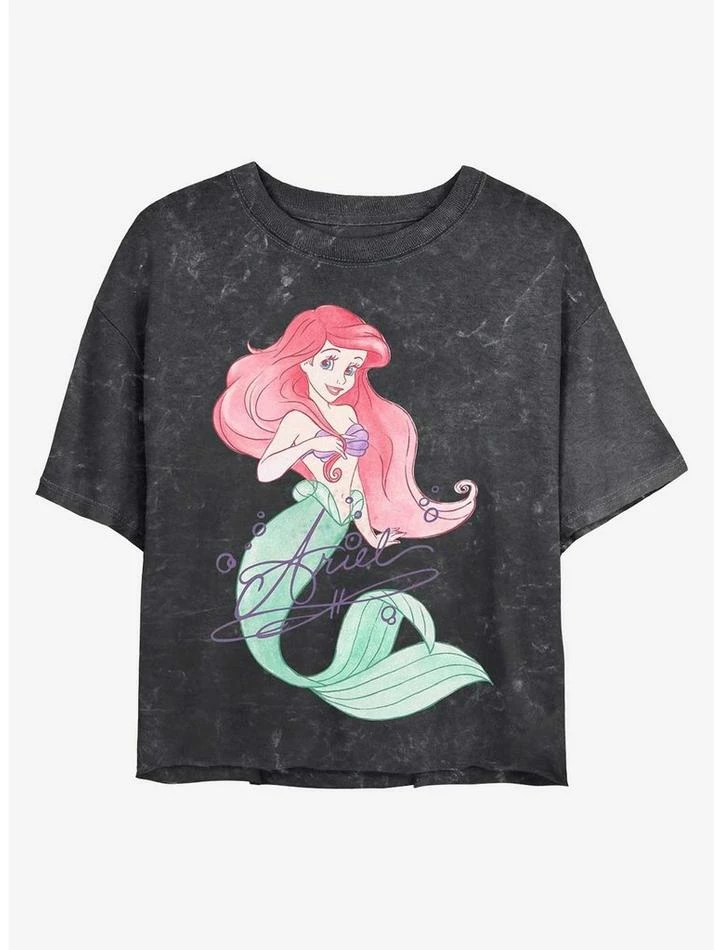 Promo 👍 Disney The Little Mermaid Signed Ariel Mineral Wash Crop ✨ Girls T-Shirt ⭐