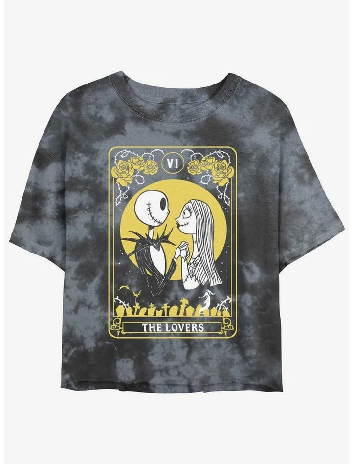Hot Sale 🌟 Disney The Nightmare Before Christmas The Lovers Tarot Card Tie-Dye Girls Crop T-Shirt 😍