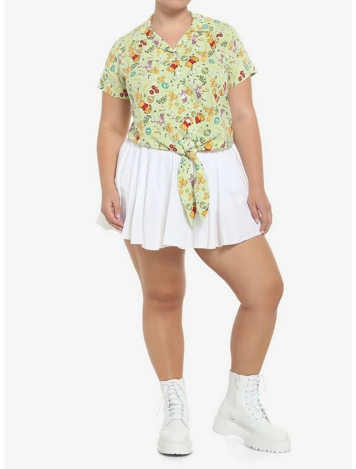 Cheapest π Disney Winnie The Pooh Cottagecore Floral Tie-Front Girls Woven Button-Up Plus Size β
