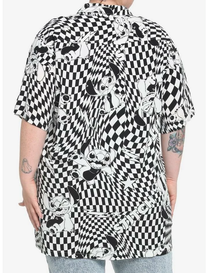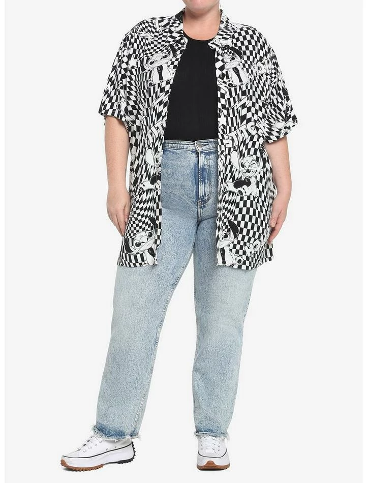 Cheapest ๐งจ Her Universe Disney Lilo & Stitch Warped Checkered ๐ Girls Woven Button-Up Plus Size โ