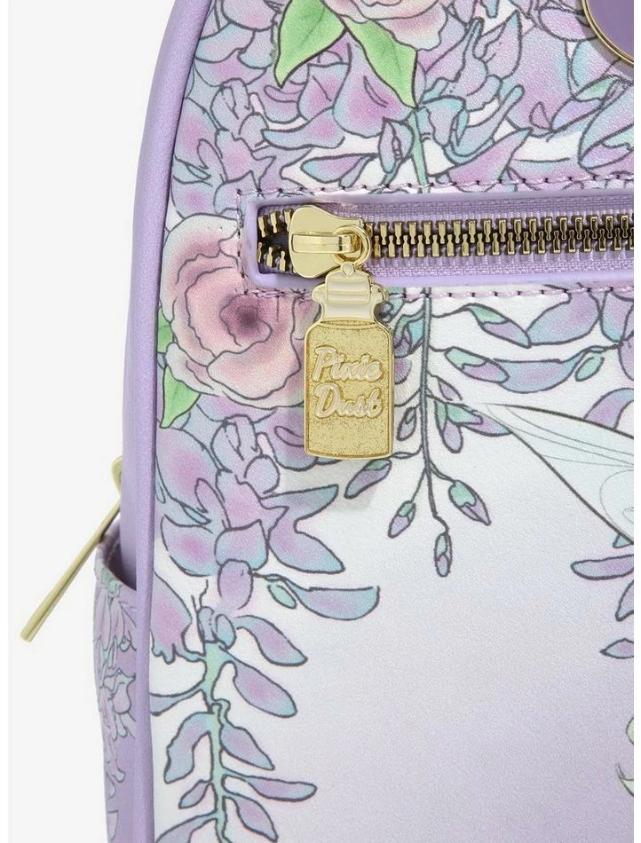 You can fly if you think of the happiest things, like adding this mini backpack to your collection! Whether you’re heading to Skull Rock or Mermaid Lagoon, you can trust Tinker Bell to carry your essentials in this Peter PanΒ backpack, featuring the pixie in a watercolor-inspired illustration, surrounded by wisteria and other flowers. Comes with a pixie dust zipper charm on the front pocket, side pockets and interior zipper pocket.