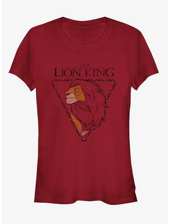 You’d be willing to walk across the Elephant Graveyard to get your hands on the Disney Simba Triangle Juniors’ T-Shirt. This classic Simba shirt shows off the young lion framed by a triangular border and the Lion King logo above. Runs small, size up.