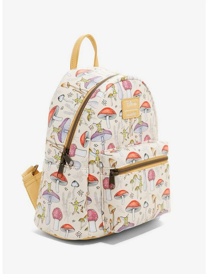 With Tinker Bell’s temper, sometimes she just needs to take a breather and collect herself in the forest. ThisΒ Peter PanΒ mini backpack features an allover print of Tinker Bell enjoying herself around some mushrooms. Adjustable straps, front zipper pocket, interior drop pocket and bronze tone hardware.