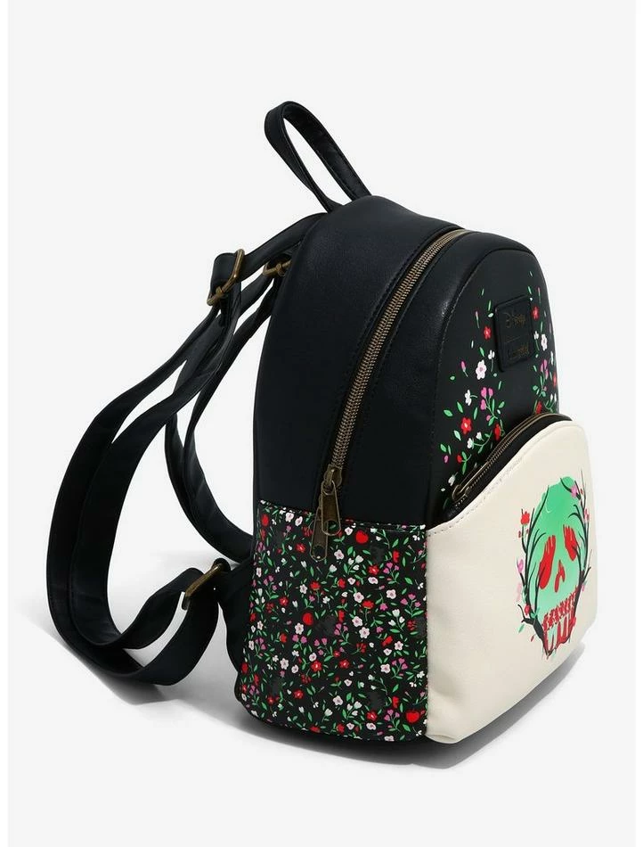 Everyone will stay clear of your stuff when in this mini backpack from Disney featuring a poison apple graphic with branches, flowers and silhouettes of the Seven Dwarfs. Inside has a drop pocket.
