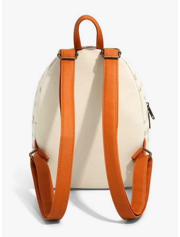 Gearing up for another blustery day at the Hundred Acre Wood? Pack all of your essentials into this mini backpack! From Winnie the Pooh, this bag features Pooh, Tigger, Piglet and Eeyore braving the breeze, with “A rather blustery day” in cursive on the front zipper pocket. Comes with leaves blown all over, an interior drop pocket and antique brass-tone hardware.