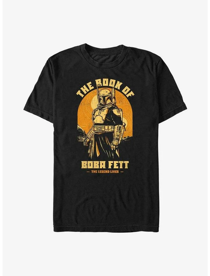 Two suns, but only one legend. This lightweight black graphic tee — inspired by the Disney+ series Star Wars: The Book of Boba Fett — features the legendary bounty hunter getting some Vitamin D on Tatooine.