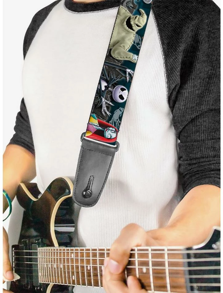 Deals 🥰 The Nightmare Before Christmas 4 Character Group Cemetery Scene Guitar Strap 👍