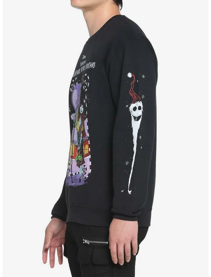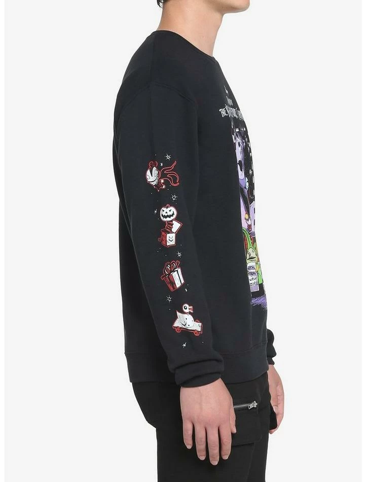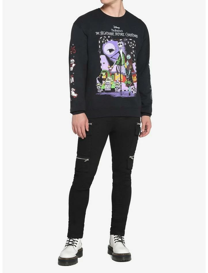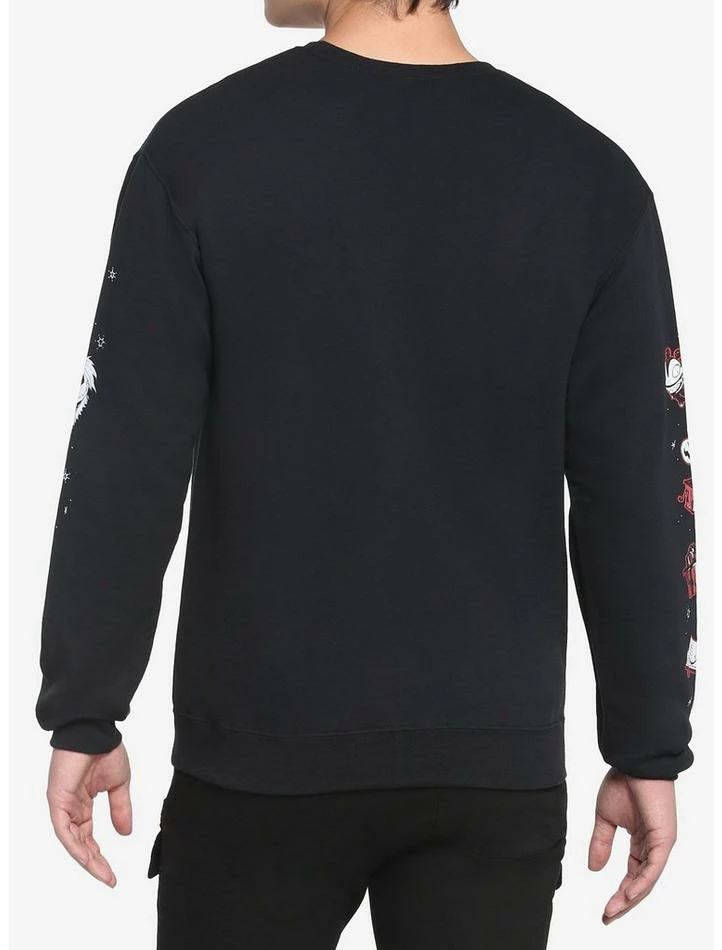 What’s on our wish list for Sandy Claws? Definitely this sweatshirt! Add some Halloween Town to your wardrobe with this crewneck from The Nightmare Before Christmas, featuring Jack & Sally in Christmas Town with toys down one sleeve and Sandy Claws on the other.